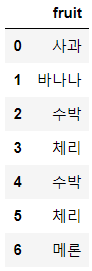 fruits=['사과', '바나나', '수박', '체리', '수박', '체리', '메론']
