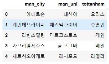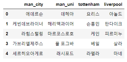 'man_uni':['데헤아', '해리맥과이어', '마르코스로호', '폴 포그바', '래시포드'],
