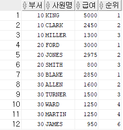 RANK() OVER (PARTITION BY deptno ORDER BY SAL DESC) AS "순위"